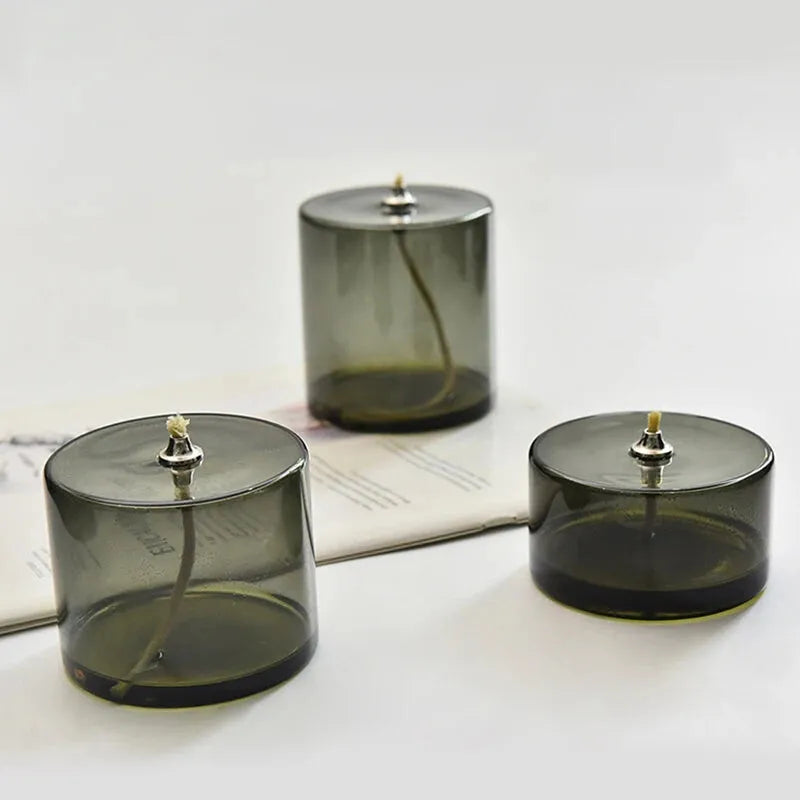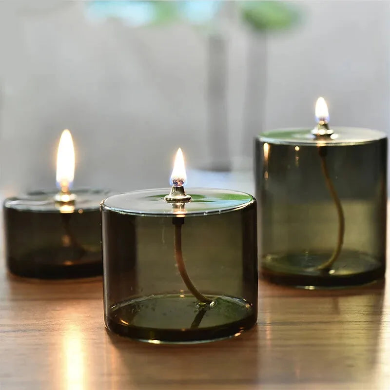 Lampe à huile en verre, inspiration ancienne et style argent, idéale pour une ambiance chaleureuse et décorative.