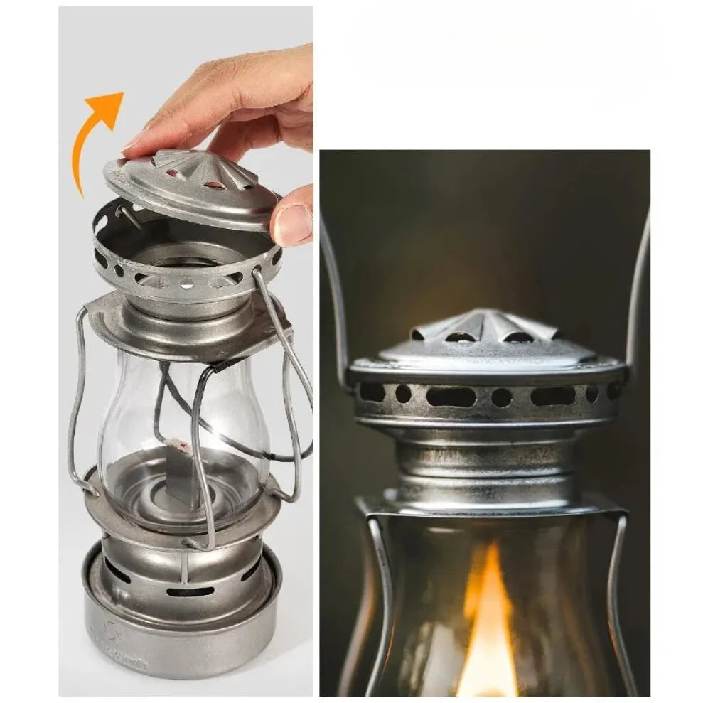Créez une atmosphère authentique lors de vos sorties en plein air grâce à cette lampe à huile camping au style rétro soigné. Fonctionnant au kérosène, elle diffuse une flamme réelle, douce et stable, idéale pour éclairer un campement, une table de bivouac ou une soirée sous les étoiles. Fabriquée en acier inoxydable, elle offre une excellente résistance aux conditions extérieures tout en conservant un design sobre et intemporel, apprécié des amateurs de camping et d’aventure.