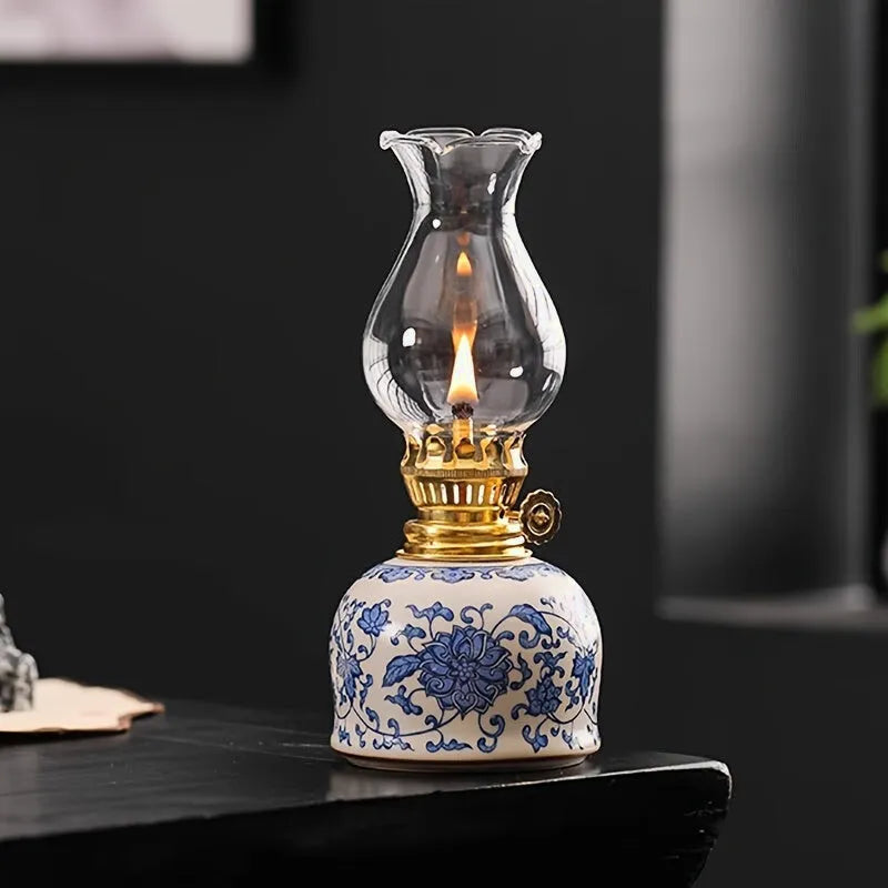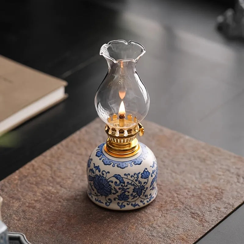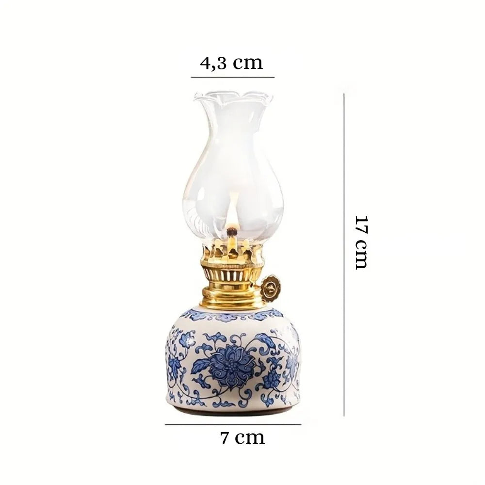 Lampe à huile céramique décorative au style vintage, idéale pour un éclairage chaleureux sans électricité.