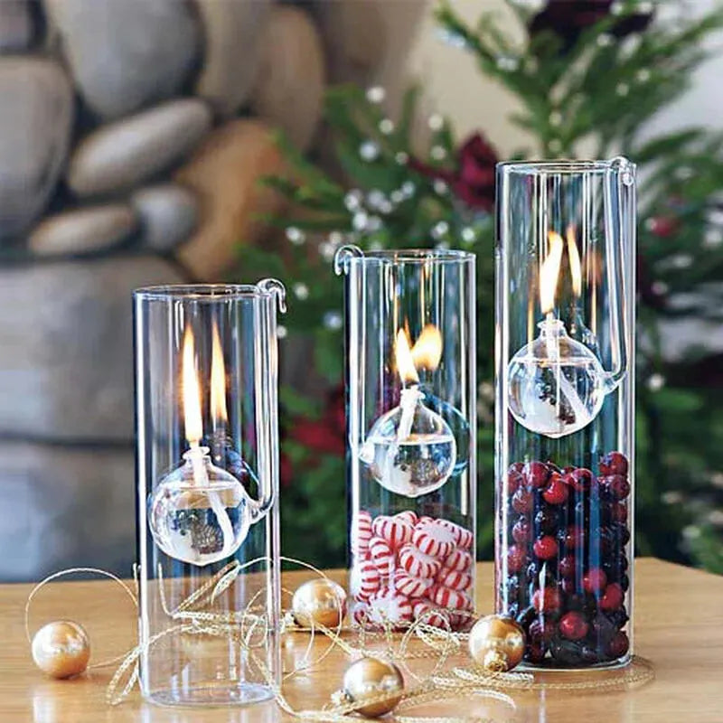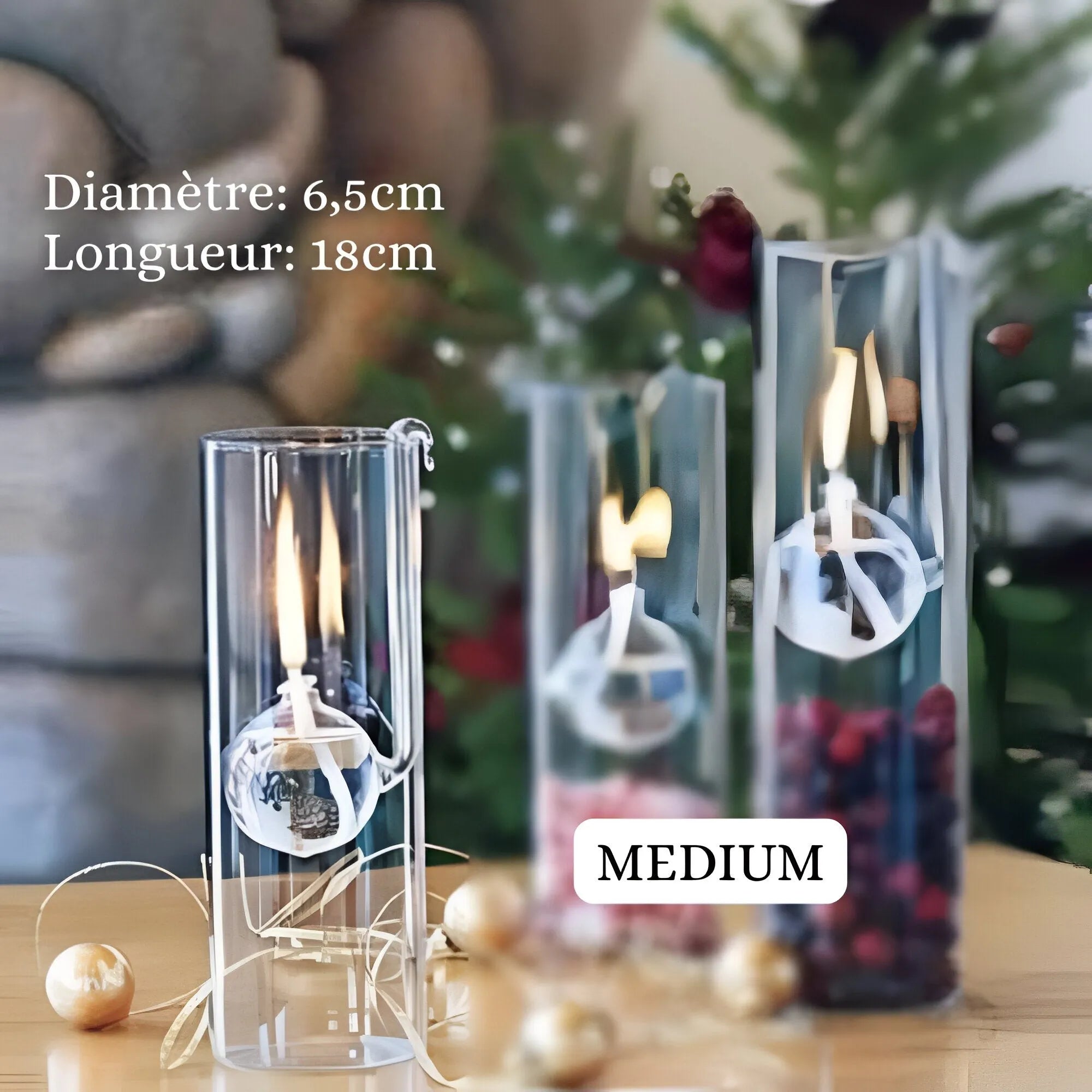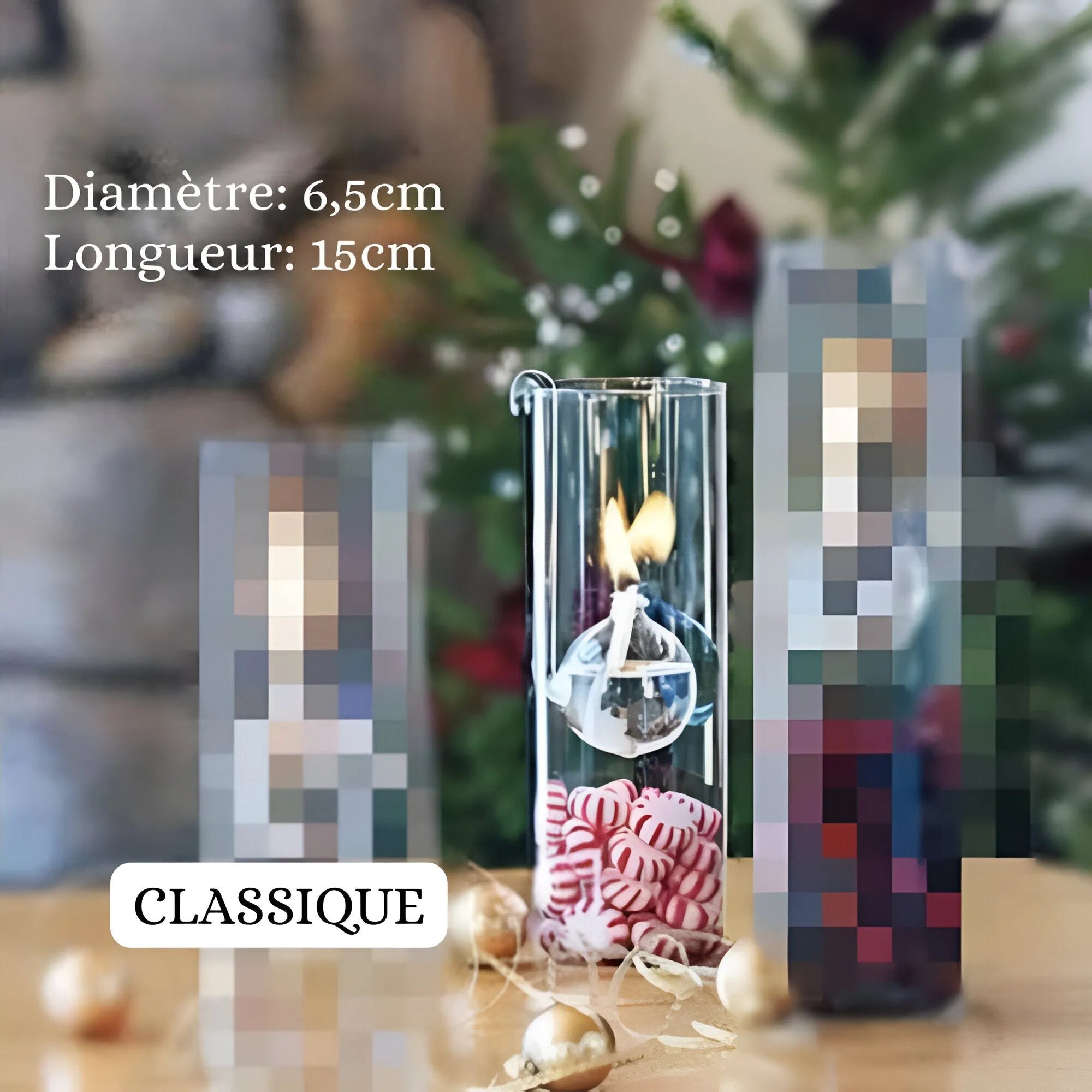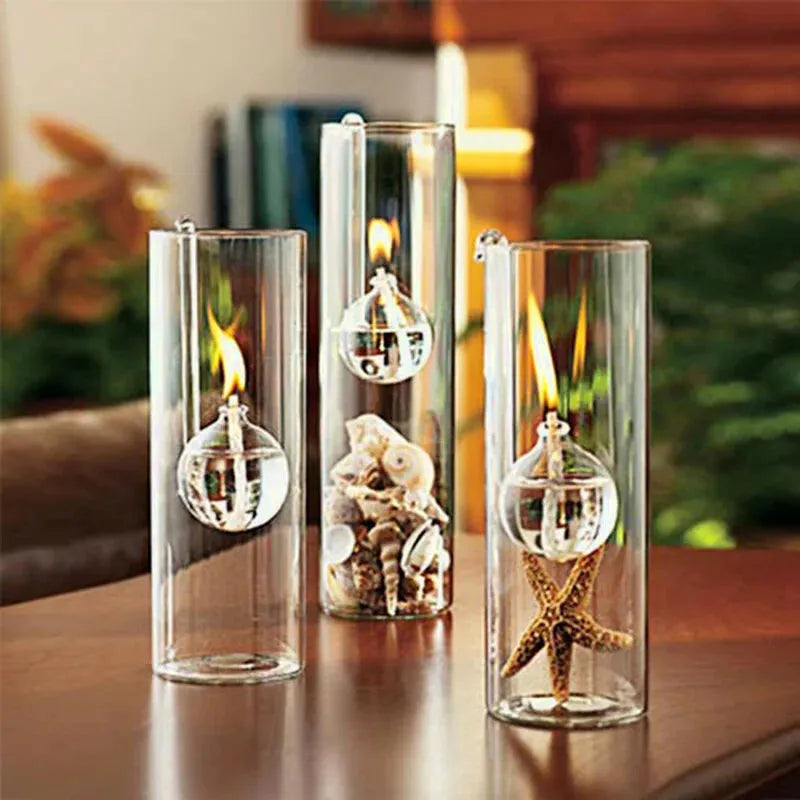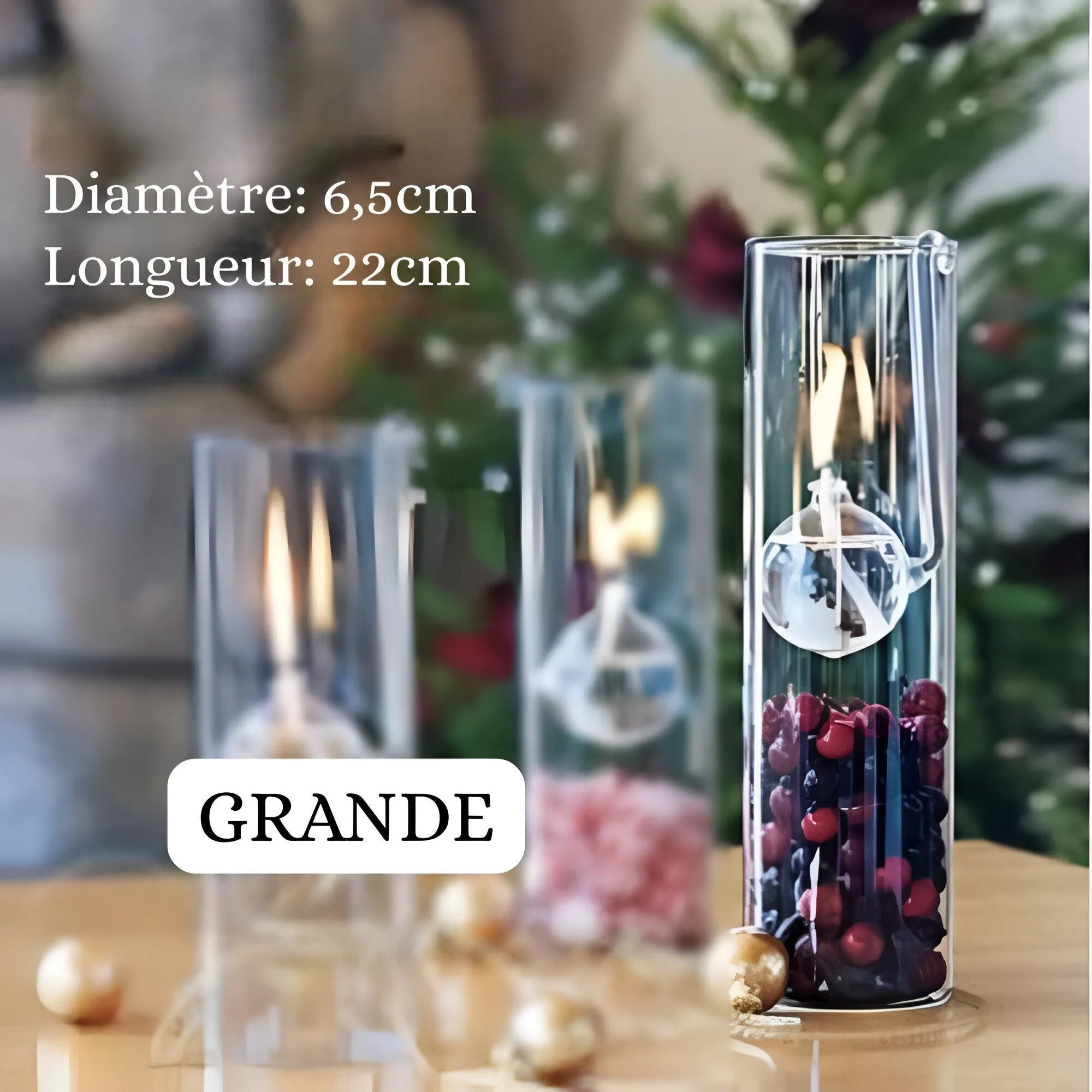 Lampe à huile effet cristal en verre, idéale pour une décoration élégante, lumineuse et polyvalente.