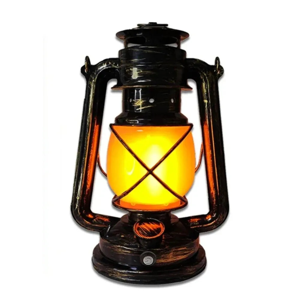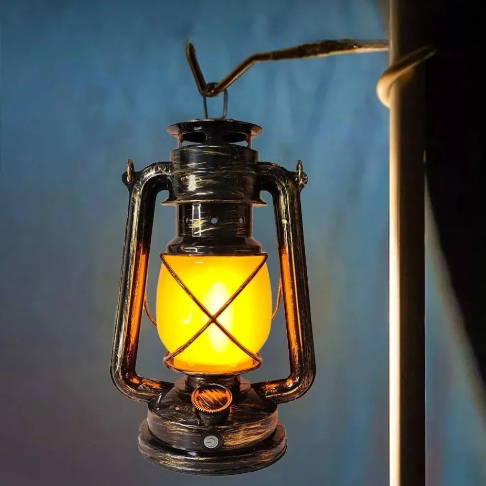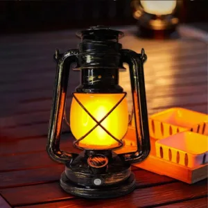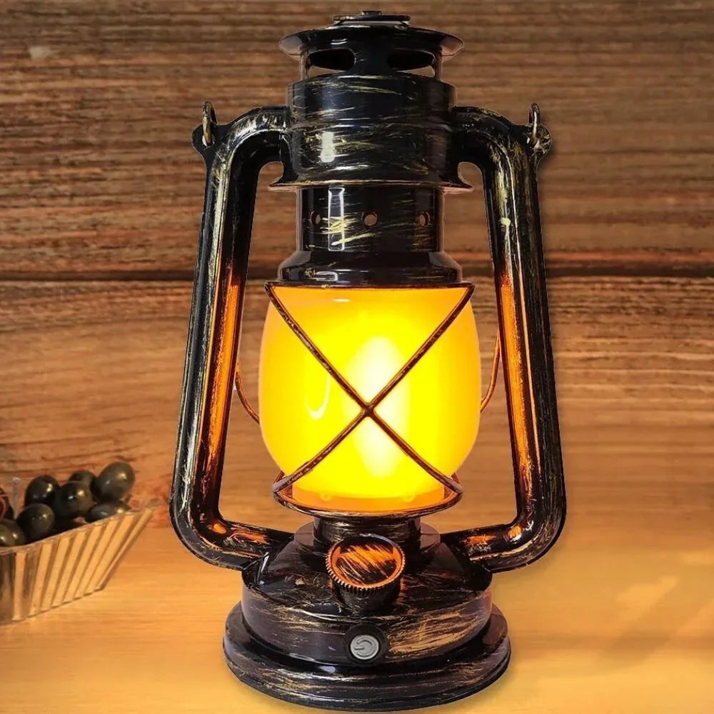 Lampe à huile LED au style rétro, idéale pour une ambiance chaleureuse sans flamme ni combustible.