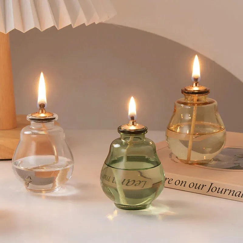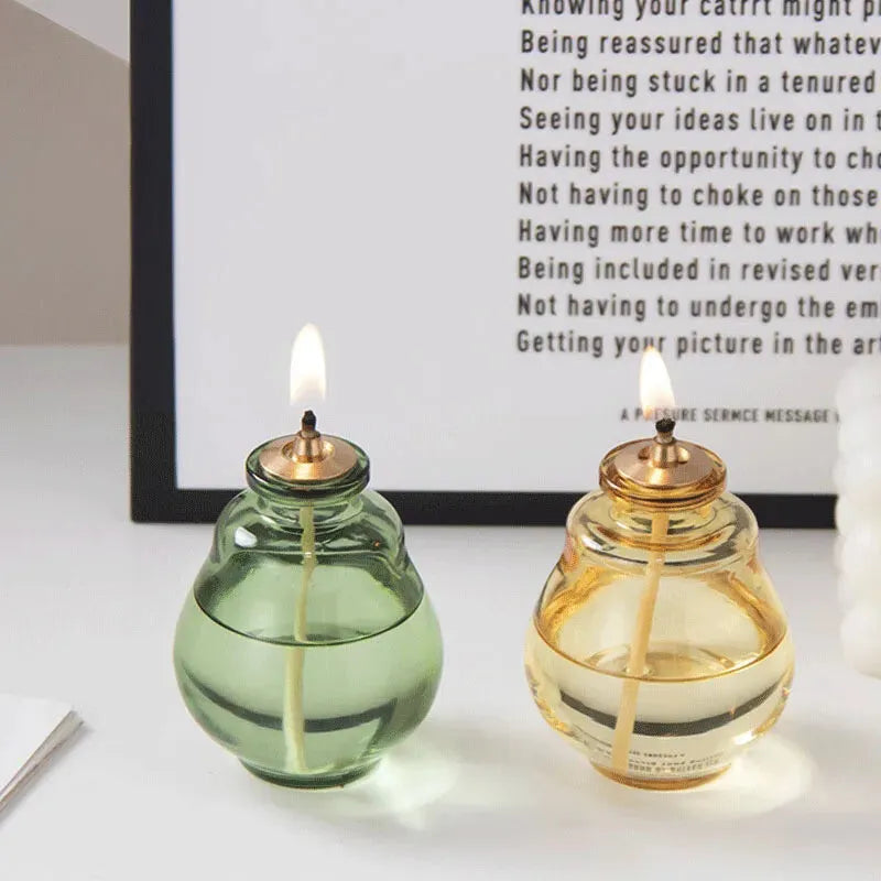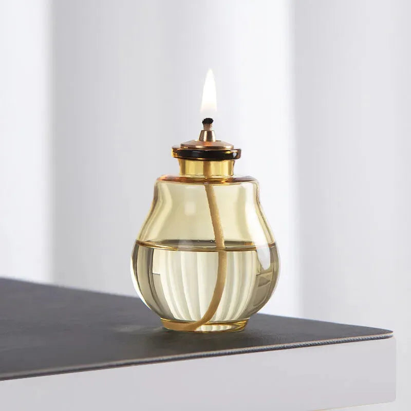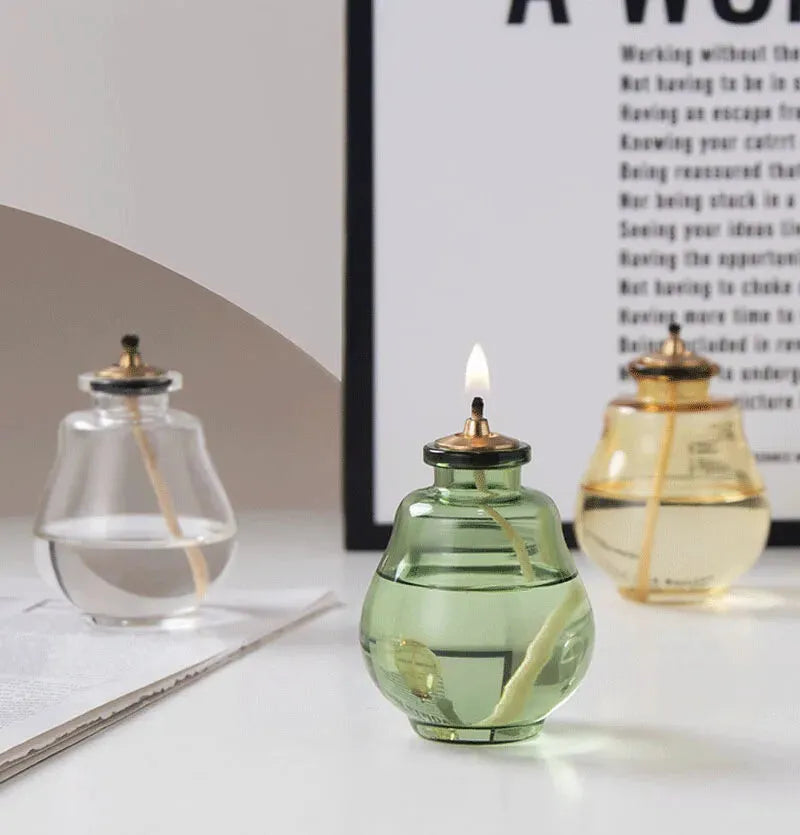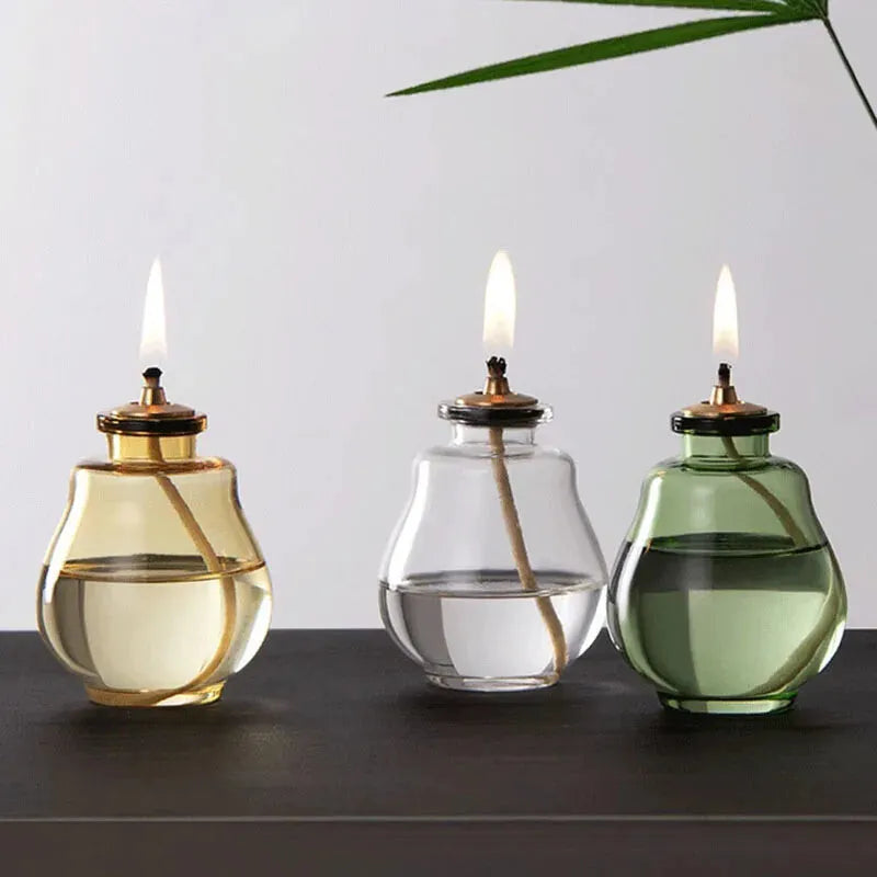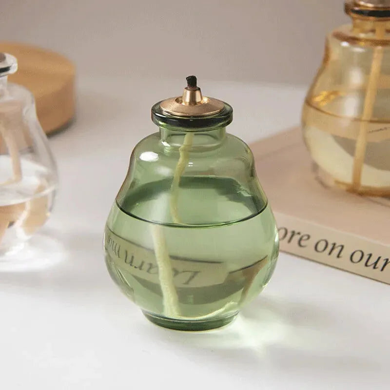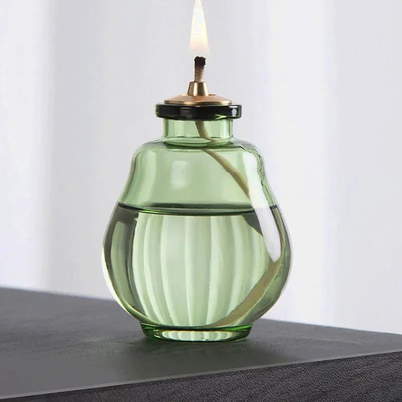 Lampe à huile provençale en verre, idéale pour créer une ambiance douce, chaleureuse et décorative sans électricité.