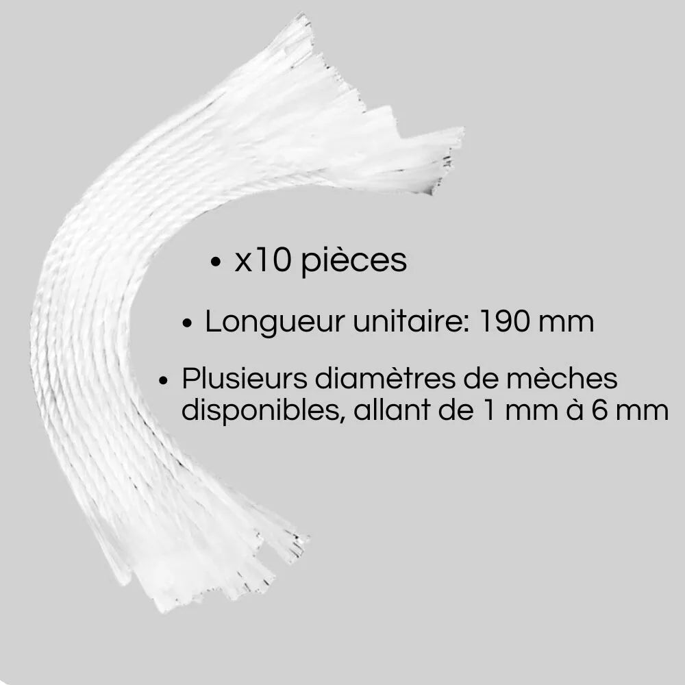 Lot de 10 mèches en fibre de verre pour lampe à huile, durables, faciles à couper et conçues pour une flamme stable sans fumée.